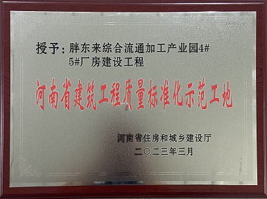 许昌胖东来综合流通加工产业园4#5#厂房建设工程荣获“河南省建筑工程质量标准化示范工地”