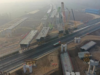 大江官方网址方唐高速跨兰南高速钢箱梁项目顺利完成跨路施工吊装